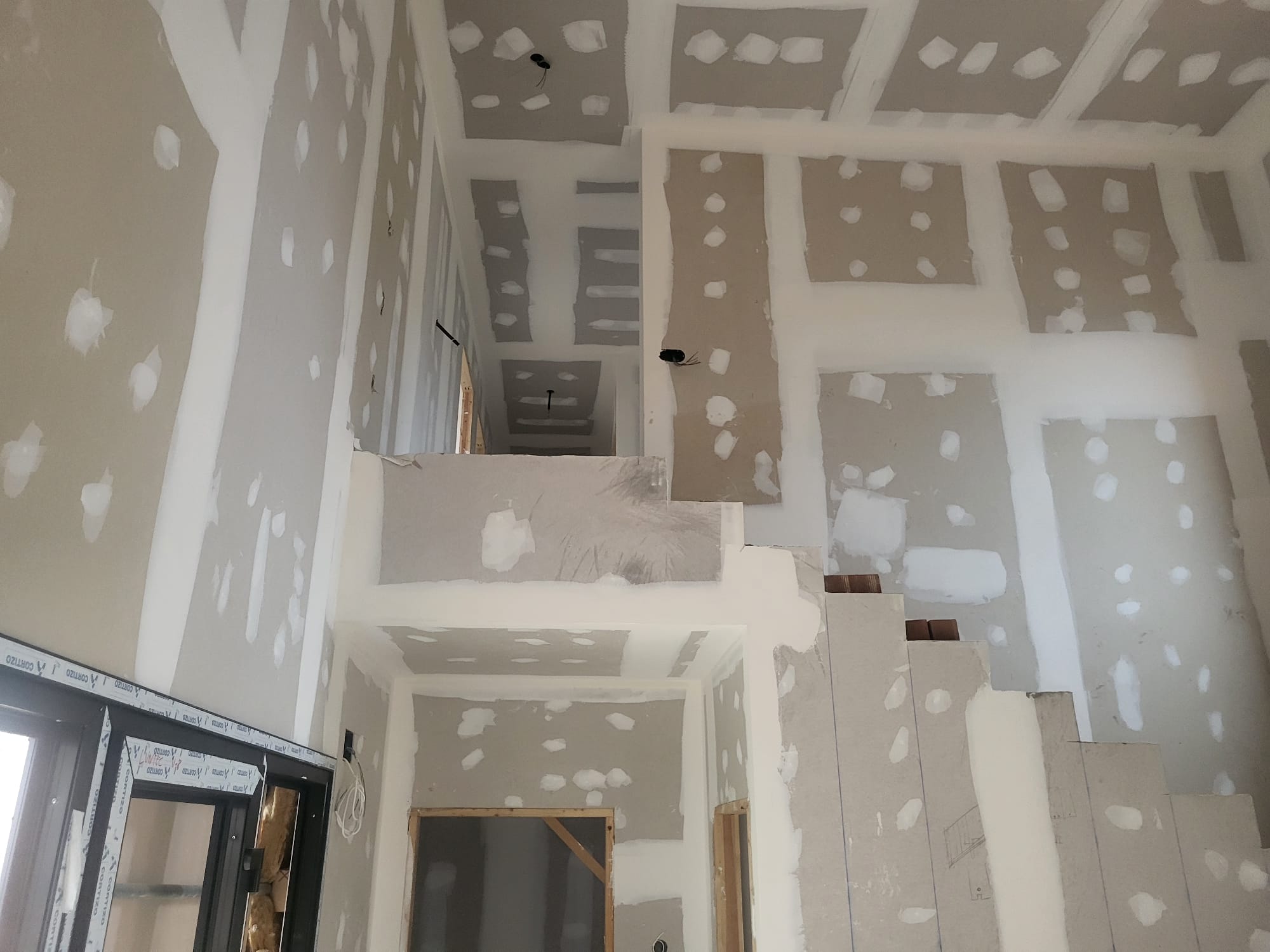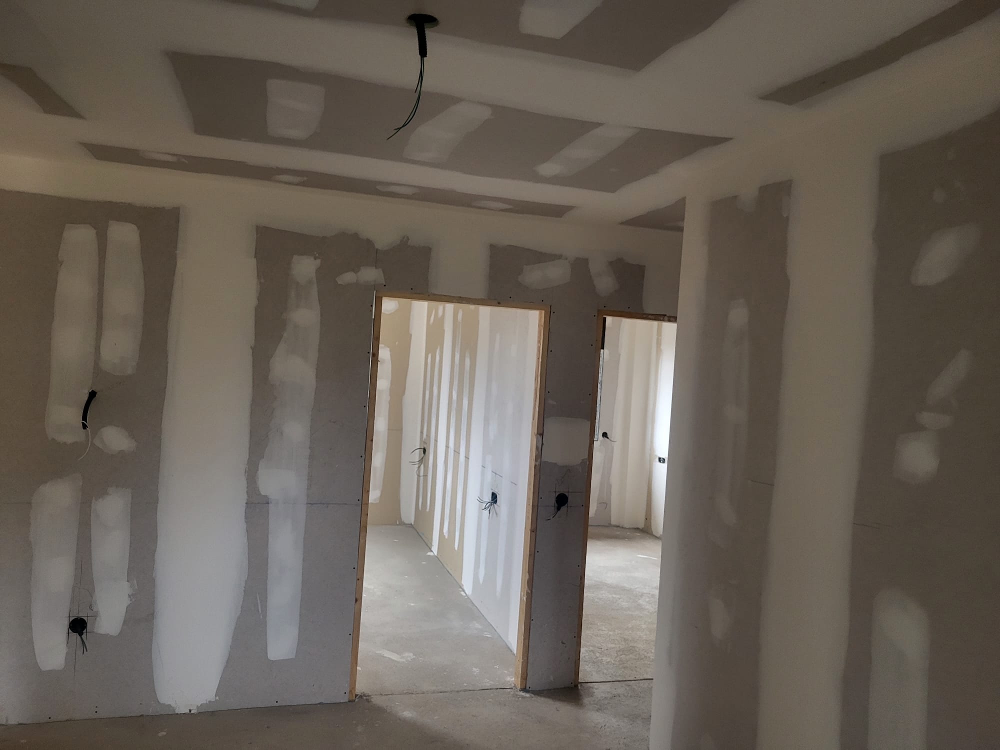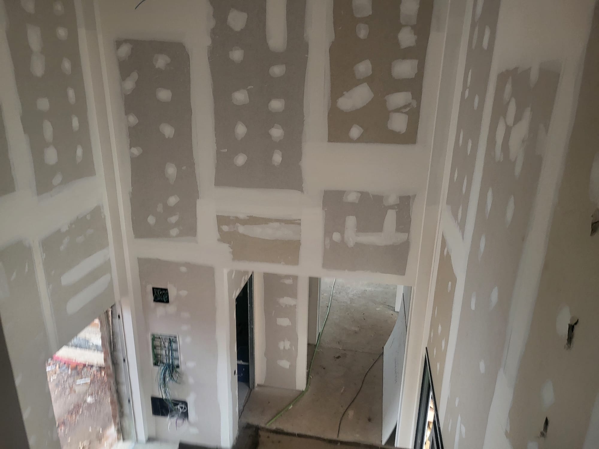 En este chalet de Cáceres hemos realizado toda la obra de tabiques, trasdosados y techos en pladur (placas de yeso laminado).